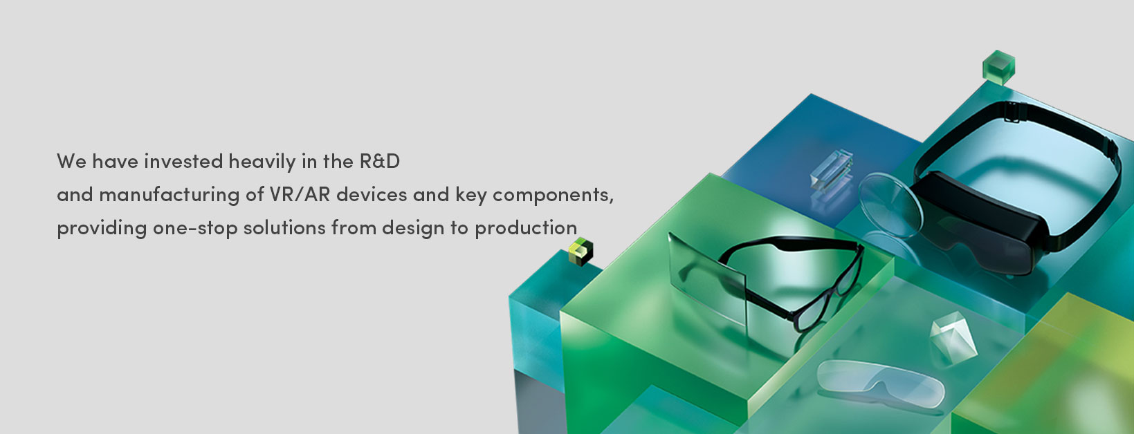 In VR/MR optics, we have developed and mass-produced a full range of lens products, including aspherical lenses, Fresnel lenses, and folded optical modules. In AR optics, we have developed and mass-produced mainstream optical products such as Birdbath, freeform surfaces, waveguides, and a full range of optical engines including LBS, DLP, LCoS, and Micro-LED.